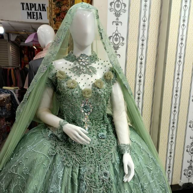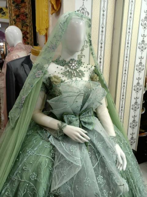 Gaun Pengantin Rempel Kipas Dada Hijau Wardah Shopee Indonesia