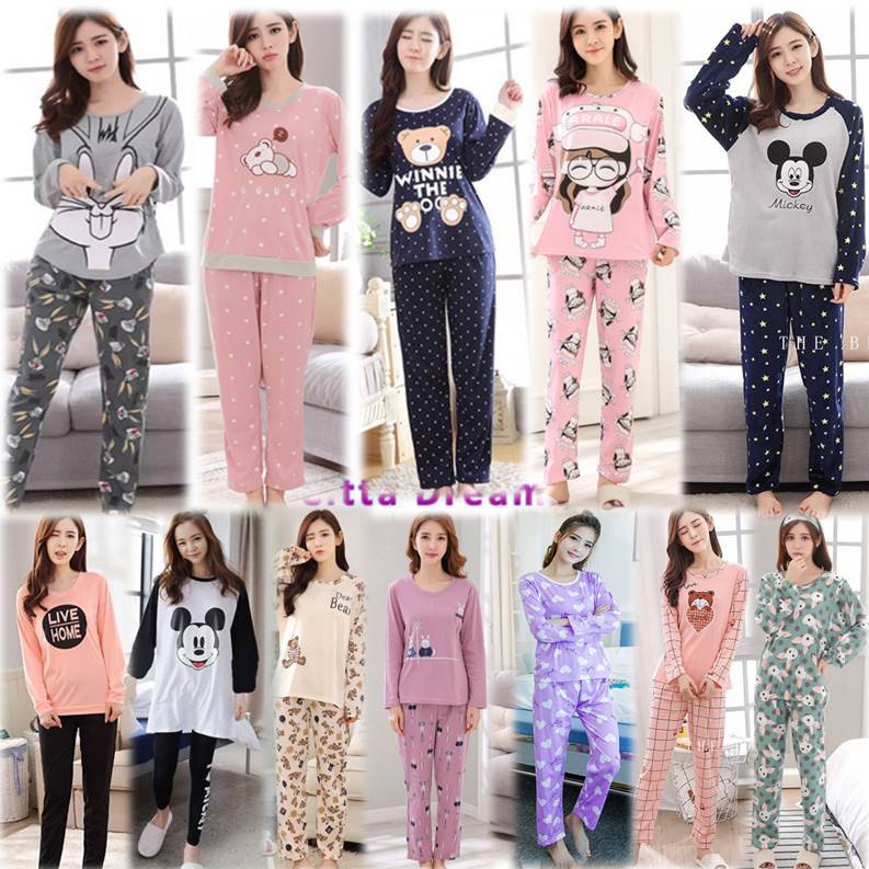 Setelan Lengan Panjang Piyama Baju Tidur Wanita Kartun Karakter Pajamas Dewasa Shopee Indonesia